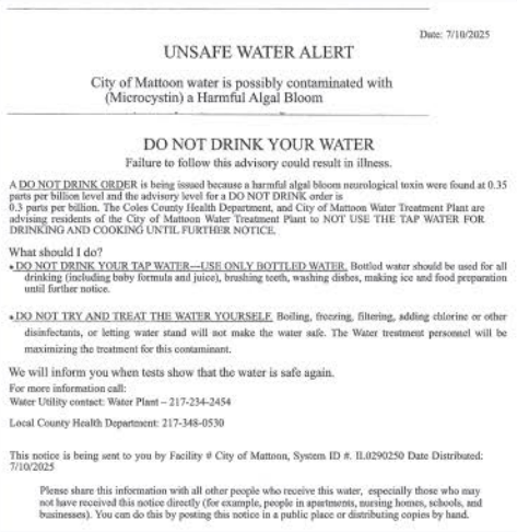 On July 15, 2025, I received a text that is presented in Figure 1. This particular notice made me think of Dr. Tiedjens comments from 1966. However, his quote only said that recreation waters are being spoiled. After the Toledo, Ohio mess on August 2, 2014, the public knows very well that Dr. Tiedjens should have discussed spoiling drinking waters as well as "recreation waters."