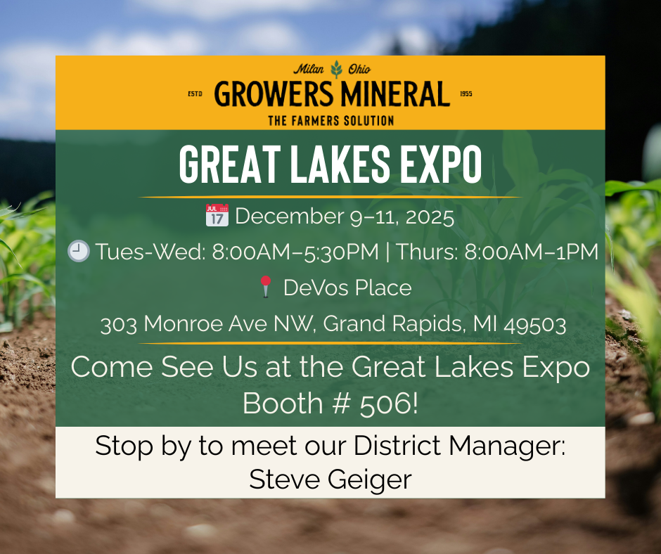 Growers Mineral is scheduled to set up and staff booths at the following upcoming farm shows and conventions. It's a great time to stop in and review your plant food and animal nutrition needs, hear about new developments at Growers Mineral, or just chat with the folks who make it all happen - your friends and neighbors!